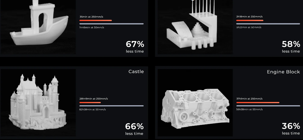 Il réduit considérablement le temps d’impression pour tous les types de modèles. Plus d’efficacité et moins de consommation d’énergie.