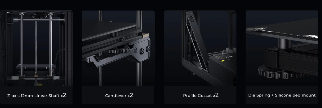 Système de mouvement amélioré pour une accélération de 2000 mm/s² et une vitesse d’impression allant jusqu’à 250mm/s (5 fois)*. Ressentez dès maintenant la vitesse et la passion de l’impression 3D. Chaque axe X/Y/Z est entraîné par un moteur pas à pas de haute précision. Un arbre de transmission en acier synchronise les deux courroies de l’axe Y. Moteur à couple élevé sur l’axe Y 42-48 pour un mouvement réactif et précis.