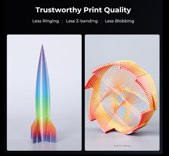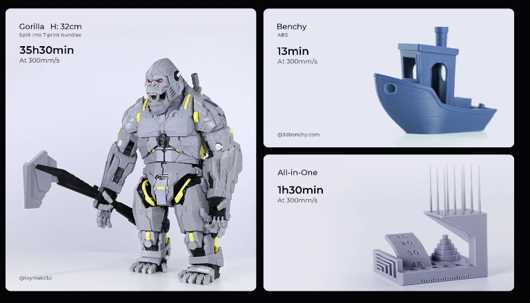 12 fois plus rapide, défiez les limites Le K1 Max atteint 600 mm/s* en seulement 0,03 s sur la base d’une accélération de 20000 mm/s². Il peut être aussi productif que plusieurs imprimantes 3D ensemble.