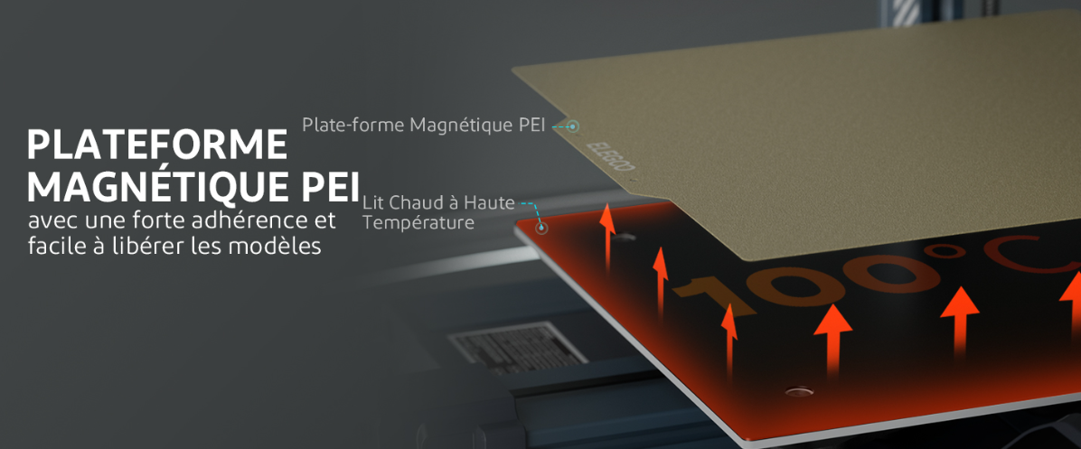La vis mère à double de l’axe Z + le double moteur de l’axe Z avec une meilleure synchronisation augmentent la précision et la stabilité de l’impression.